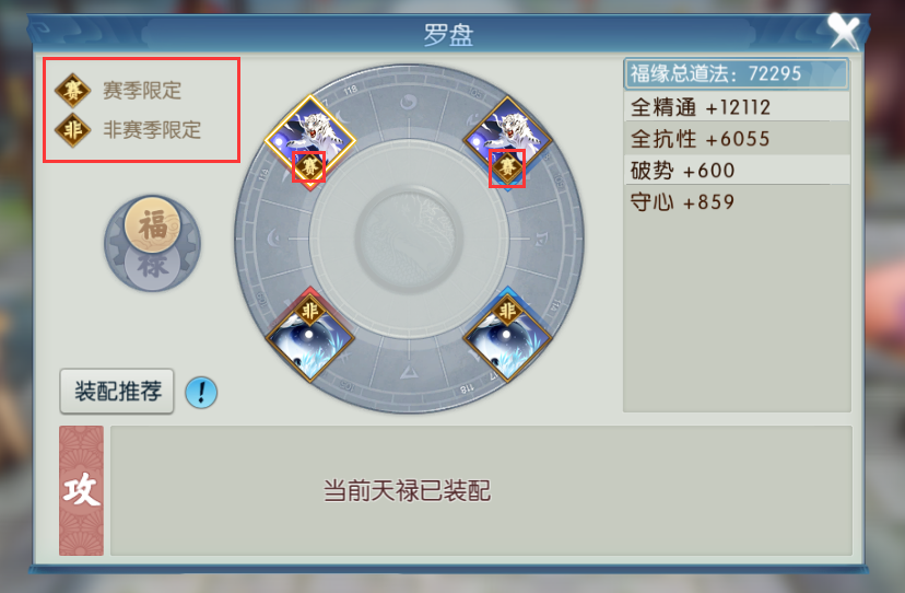 天禄罗盘是诛仙手游中提升角色对战属性的重要系统,玩家达到135级后可通过头像菜单中的人物界面进入天禄系统激活。该系统分为禄罗盘和福缘罗盘两层结构,内圈为禄罗盘可放置任意赛季天禄,外圈为福缘罗盘需按赛季规则摆放。激活需要消耗特定道具如锦鲤的赐