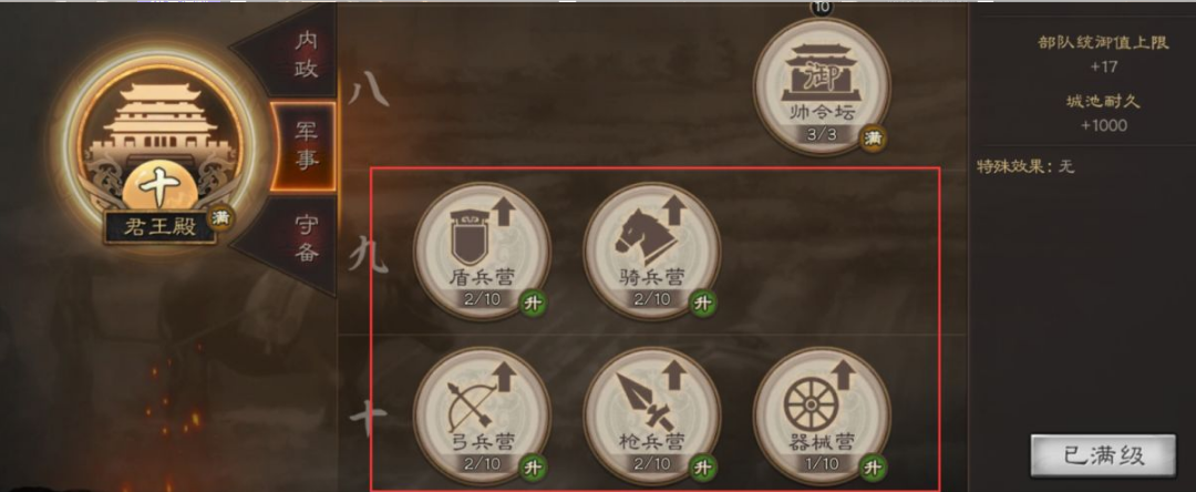 快速升至七级君王殿的核心在于资源管理与任务规划。前期需优先完成主线任务至第七章,进入第八章后暂停领取石料奖励,仅领取铜币。资源分配上需确保石料满仓,同时保留策书用于后期屯田。建筑升级顺序应以内政和军事为主,优先提升仓库、农场、采石场等基础建