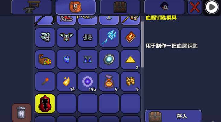 钥匙模具是咱们在泰拉瑞亚中制作特殊钥匙的重要材料,比如血腥钥匙、冰霜钥匙等。想要合成这些钥匙,首先得拿到对应的钥匙模具。模具的掉落率不高,但可以通过在特定环境刷怪来提高效率。比如血腥钥匙模具需要在血腥之地刷怪,冰霜钥匙模具则要去雪地。挂上水