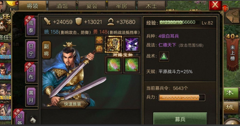 109级在游戏中算是一个重要的过渡阶段,这时候咱们的武将选择会直接影响后续的发展速度和战斗体验。推荐优先考虑紫色武将,比如马超、黄忠、许褚、典韦这些,他们的综合能力比较强,适合应对各种地形和战斗场景。马超作为骑兵将领,在平原作战时表现非常突