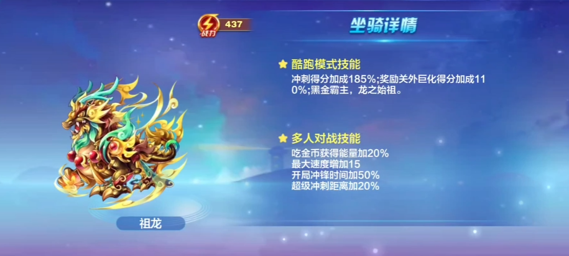 祖龙的核心技能是冲刺得分加成高达185%,并且在奖励关卡之外还能触发巨化状态并带来110%的得分加成,这意味着它的得分爆发力主要集中在奖励关外的冲刺和巨化期间。基于这个特性,选择搭档的核心思路就是要找那些技能能频繁触发冲刺、巨化,或者能在奖