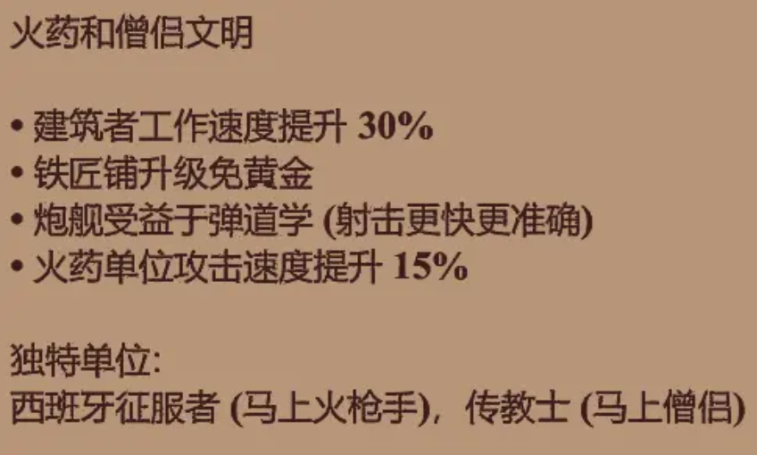 在众多文明中,西班牙被广泛认为是一个友好的起点,因为它拥有全面且强力的科技树。西班牙的骑兵和步兵科技均达到满级,这为兵种选择提供了极大的自由度与容错空间。其城堡时代的特色兵种征服者攻击力高且出手速度快,能有效压制对手。西班牙还拥有独特的传教