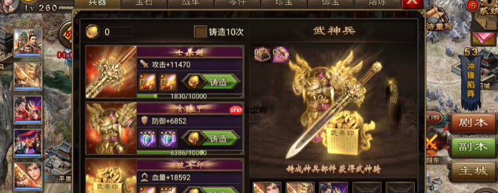 兵器系统是提升武将战力的核心部分,当兵器的重铸等级达到100级时,会激活一个重要的效果,那就是直接增加300点破甲值,这个属性能够显著提高武将的破防能力,让攻击更有效,尤其是在面对高防御敌人时作用明显。兵器重铸过程涉及专门的阶段划分,例如惊