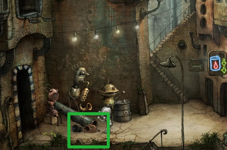 通过机械迷城第二个游戏机,咱们得先找到关键道具并巧妙组合。这一关的核心是伪装成机器人混进城里,所以需要一顶蓝色帽子和灯泡。在场景左侧可以捡到一顶红白相间的路障,连续点击几次后能获得一桶蓝色油漆。接着把油漆倒进附近的白油漆盆里,再把路障扔进去