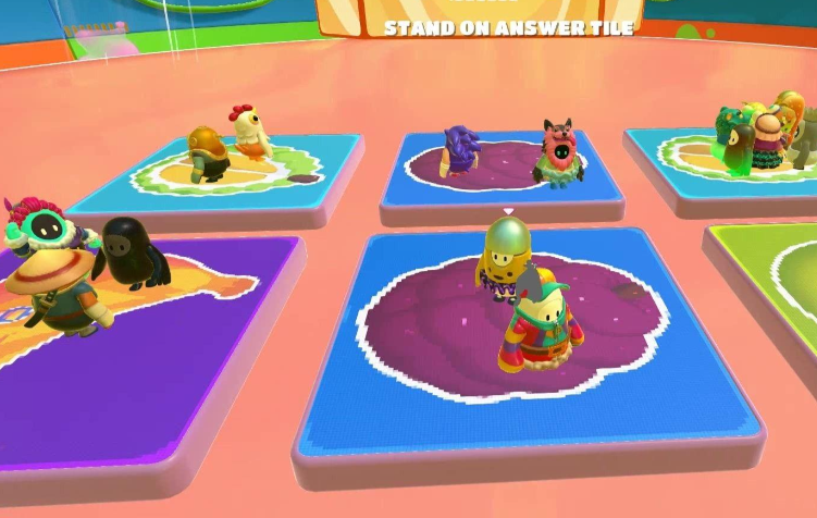 糖豆人水果记忆关卡的核心玩法是通过记忆水果图案的位置完成配对。该关卡通常出现在团队赛或淘汰赛中,玩家需要在限定时间内观察并记住随机出现的水果图案分布,随后根据系统提示选择正确的水果位置。游戏分为三轮,难度逐轮递增,第一轮出现2种水果,第二轮