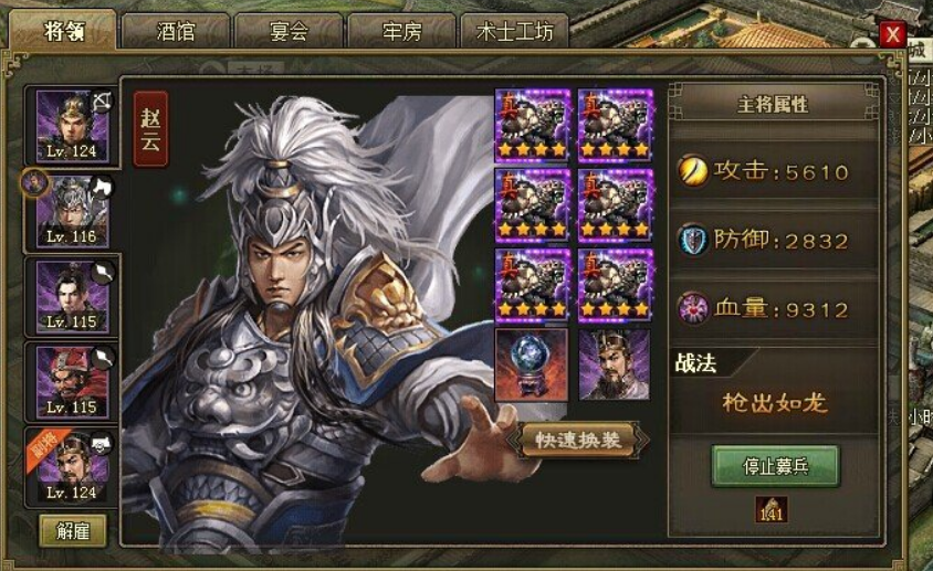 在攻城掠地180级阶段,武将的选择需兼顾觉醒状态、专属宝物及战场适应性。核心推荐阵容包括司马懿、孙策、马超、关羽和太史慈,这些武将觉醒后拥有专属技能与高额属性加成。司马懿擅长控场与持续输出,孙策具备爆发伤害,马超和关羽在平原与山地地形中表现