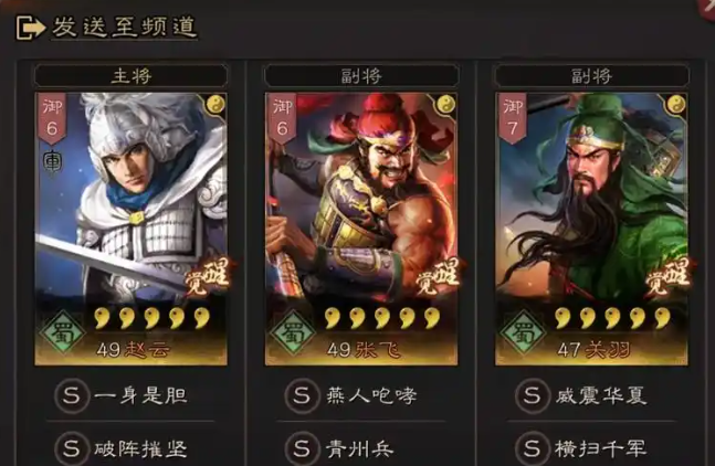 蜀枪队的核心打法围绕控制+爆发展开,比如张飞的盛气凌敌配合关羽的威震华夏可以形成连续控制链,而赵云或诸葛亮的加入能进一步提升队伍的生存和输出能力。队伍通常需要优先保证速度属性,确保先手优势,同时利用战法如破阵摧坚横扫千军等快速压低对手血线。如果缺少核心武将,也可以用关银屏、马超等替代,但整体强度会有所下降。