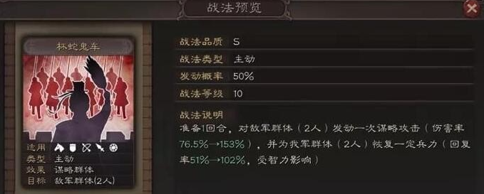 诸葛亮推荐带夺魂挟魄和杯蛇鬼车,夺魂能偷取敌方属性增强自己,杯蛇提供不错的群体伤害和回复。赵云建议带破阵摧坚和卧薪尝胆,破阵能有效削弱敌方防御,卧薪尝胆提供稳定的控制效果。刘备最好携带八门金锁阵和白毦兵,八门能减少敌方输出,白毦兵则能补充不错的伤害。这套战法组合让队伍既有输出又有续航。