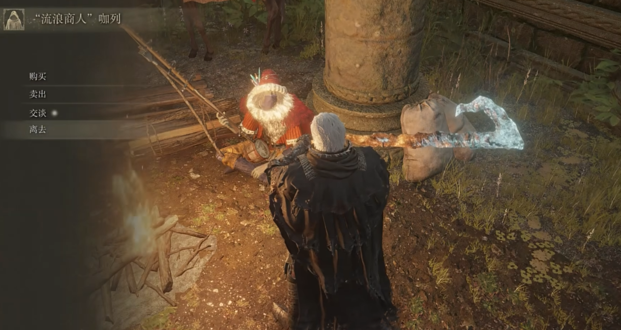 流浪商人咖列是玩家早期接触的重要NPC之一,位于宁姆格福的艾雷教堂。他不仅提供基础道具如望远镜、火把和制作皮带,还指引玩家与狼人布莱泽的初次相遇。咖列是游戏中唯一有名字的流浪商人,其背景与流浪民族的悲惨命运紧密相连。通过挖掘游戏文件,可以发现咖列原本有一条横跨多区域的完整任务线,涉及流浪民族被黄金律法迫害的历史,以及他们试图拥抱癫火却未能成功的悲剧。