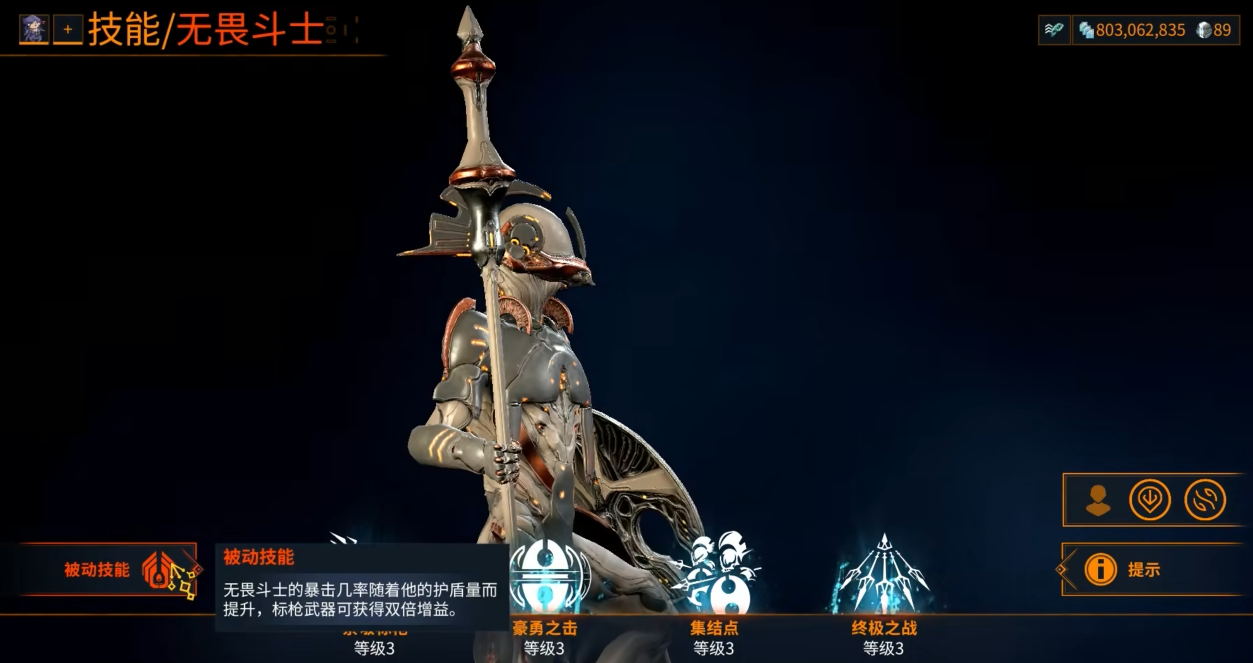无畏斗士是星际战甲中第50款战甲,定位为团队辅助与生存型战甲,其核心技能围绕护盾恢复、群体控制与爆发输出展开。该战甲通过技能组合可实现高频护盾回复与范围压制,尤其适合高波次防御或生存任务。技能设计上融合了斯巴达战士的作战风格,通过投掷长矛与战吼强化团队作战能力,技能动画表现具有鲜明的力量感与厚重感。