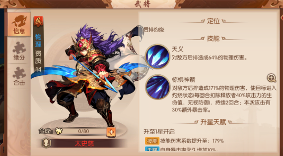 资源分配应优先保证鲁肃和太史慈的养成进度。鲁肃的吴国战阵提供全队免伤和灼烧增伤,需尽快激活;太史慈的星级提升直接影响暴击率和引爆效率。武将碎片获取可通过限时活动定向兑换,神兵强化材料需通过每日副本积累。紫金将的幻化需要对应幻晶,平民玩家可通过长期参与活动逐步收集。
