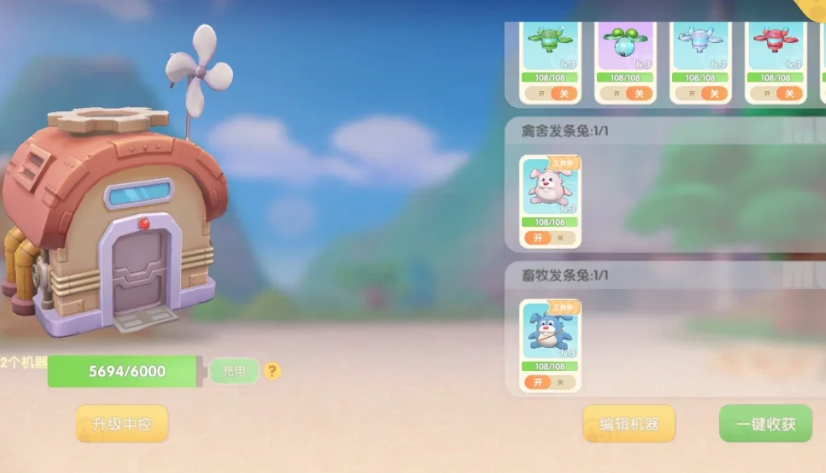 不过记得要确保中控台有足够的电量,不然发条兔兔可能会罢工哦!充电也很简单,在中控台界面消耗一些资源就能补充电量,平时多收集点石头和草料备用就好啦。发条兔兔一旦开始工作,就会自动在农场里忙活,完全不需要手动操作。禽舍发条兔会定时去鸡窝和鸭窝收蛋,畜牧发条兔则会照顾牛和羊,帮你省下不少时间。