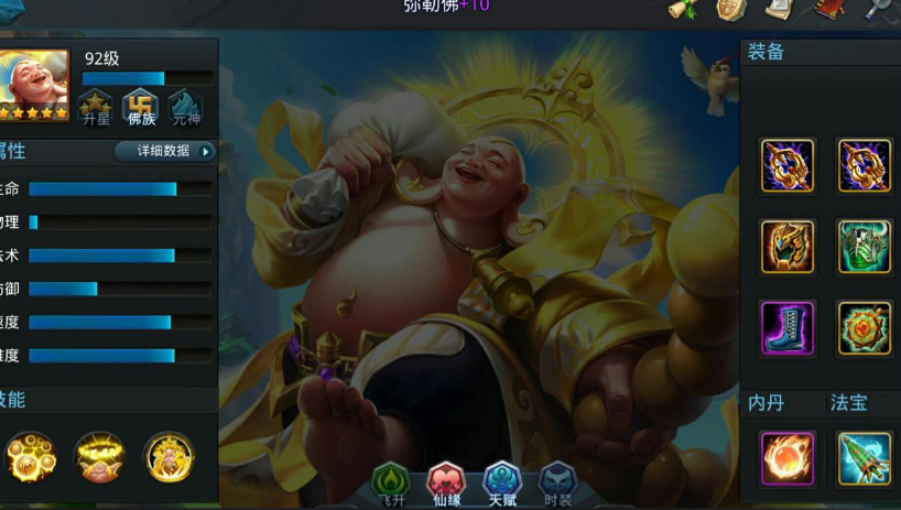 战场中弥勒佛需保持净土领域与佛光领域的双重覆盖,二者叠加可带来20%效果提升。饰品选择直接影响领域持续时间与生效范围,因此冷却缩减属性尤为关键。在排行榜等单次决胜场景中,建议采用弥勒佛+镇元+元始天尊的阵容,利用固定站位发挥最大效能。若缺乏金伞支持,则需搭配兕牛或九灵等传统肉盾形成双前排体系。最终需根据实际装备库灵活调整,核心思路是优先满足冷却需求,其次平衡生存属性。弥勒佛的强度体现在技能联动而非单一数值,饰品作为属性载体需服务于整体战术框架。