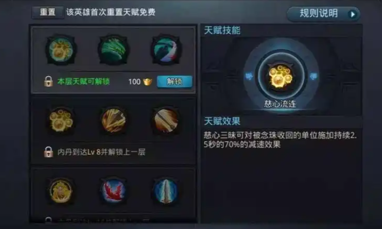 弥勒佛的核心技能慈心三昧具有聚怪与控制效果,9秒基础冷却时间通过装备叠加后可压缩至4.32秒,实现战场高频控制。饰品选择需配合其技能特性,金伞法宝提供的12%冷却缩减及30%冷却提升效果不可替代,即便紫色品质的金伞也能发挥基础功效。在预设技能顺序时,建议将一技能置于首位,确保开局快速建立控制优势,后续衔接法宝与二技能形成连招体系。