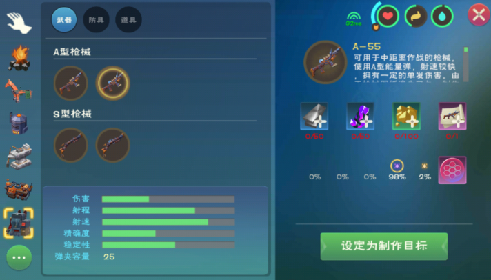 铁制武器是玩家前期提升战斗与采集效率的核心装备。制作铁制武器需满足三个基础条件:玩家等级达到10级、解锁铁砧制作权限、收集足够的铁锭与魔晶。铁矿可通过镐子采集,木镐效率较低但初期可用,铁矿需在熔炉中熔炼为铁锭,魔晶则需在夜晚击败怪物获取。铁制武器包含剑、弓、斧、镐等类型,不同武器需消耗20个铁锭和5个魔晶。