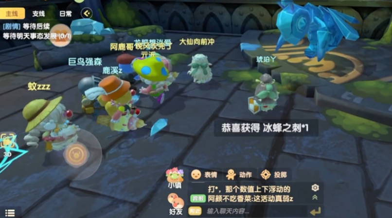 妖蜂被打败后会掉落冰晶石,赶紧捡起来每天最多能捡10个。这些冰晶石能兑换超多奖励,比如冰晶权杖和家具。妖蜂两分钟后会复活,想拿满奖励的小摩尔可以多打几次。投掷时不用太着急,看准节奏每4秒攻击一次,配合队友的召唤技能很快就能搞定。最后提醒大家尽量选人多的服务器,人多力量大打得快。战斗地点在团结之心遗迹,传送门就在黑森林里。记得戴好团结之心道具,能多1颗冒险之星增加容错率。