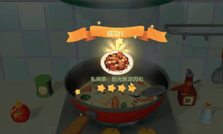 准备好食材后,咱们就可以直奔餐厅啦!在餐厅的角落里,你会看到一个烤箱,点击它就能打开烹饪界面。记得要按照顺序放食材哦,先放鸡蛋作为主食材,再放胡萝卜和猪肉。调整好火候,选择中火,然后耐心等待一会儿,香喷喷的油酥肉松就出炉啦!