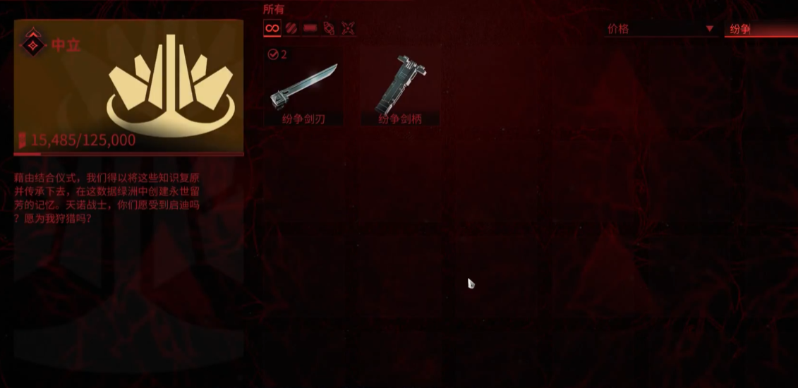 纷争的部件包括刀刃、护手和剑柄三部分,掉落概率相对均衡但需要重复刷取。在收集齐所有部件后,还需准备相应的锻造材料,包括奥罗金电池、合金板和神经元等基础资源。锻造过程需要12小时,加速制作需消耗白金。若玩家不愿等待自然掉落,也可通过交易市场直接购买其他玩家出售的部件或成品,但价格通常较高且受市场波动影响。