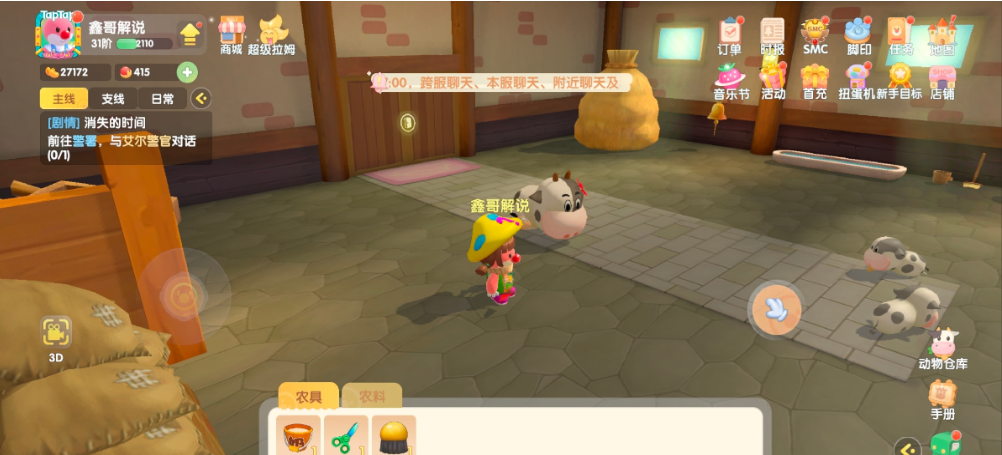 若发现牛或其他牲畜跑出棚外,最直接有效的方法是使用牲畜小屋内的铃铛功能。进入畜棚后,点击右侧的黄色铃铛图标,摇动后等待片刻,散落的牛会陆续自动返回棚内。这一机制适用于所有饲养在牲畜小屋的动物,但需注意动物归巢需要一定时间,并非即时完成。