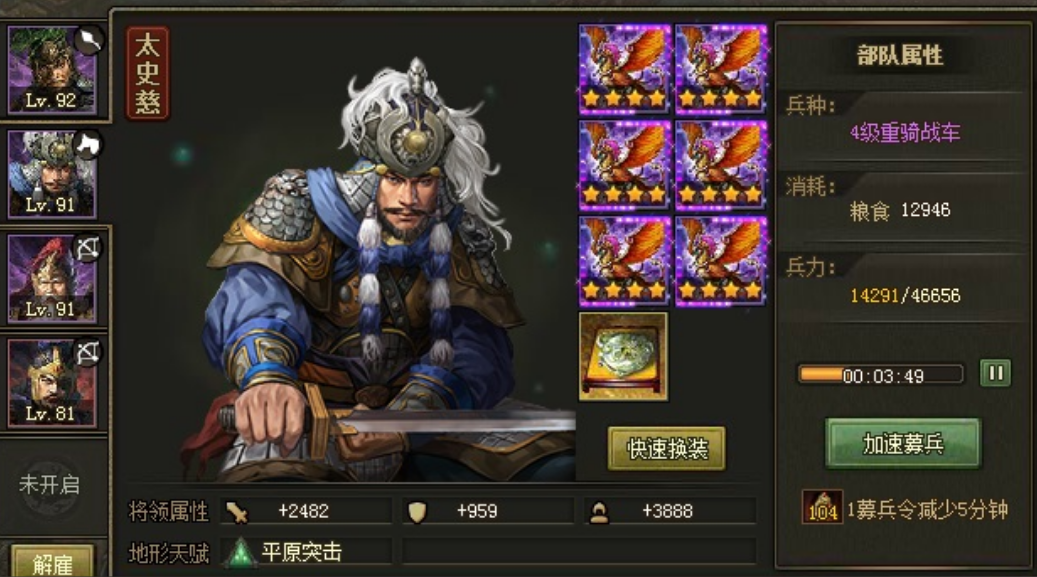 布阵顺序需严格遵循甘宁→黄忠→马超→夏侯惇的梯队逻辑。甘宁的初始战法抵挡和残兵消耗直接影响后续武将的生存压力。黄忠在中期需承担抵挡第二个部将战法的责任,若成功则能大幅降低副本难度。马超的觉醒战法和高统属性是应对太史慈双战法的关键,而夏侯惇的最终出场需确保其满状态,利用强防和血量优势完成收尾。