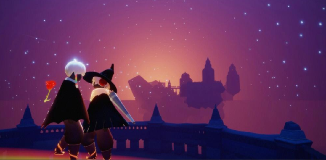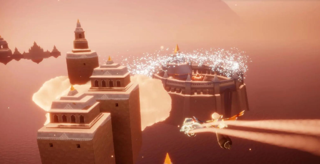 靠近千鸟城时,场景会自动切换昼夜效果。如果想看白天的景色,记得在霞谷终点打坐触发动画跳过;若想体验黑夜版本,则直接跳过动画。降落在城堡平台后,可以自由探索各个角落,最佳拍照点是中央塔楼,能拍到全景。注意不要飞得太靠近边缘,否则可能被传送回遇境。