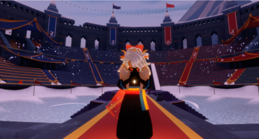 首先需要进入霞谷地图,一路滑行到终点大厅。这里的关键是不要直接冲过终点线,而是扭头看向右侧的窗户区域。找到最右边那扇窗户的角落,其他窗户有空气墙阻挡,只有这个角落能穿过去。如果光翼数量足够,可以直接蹭云飞;光翼较少的话,建议先补充能量再尝试。