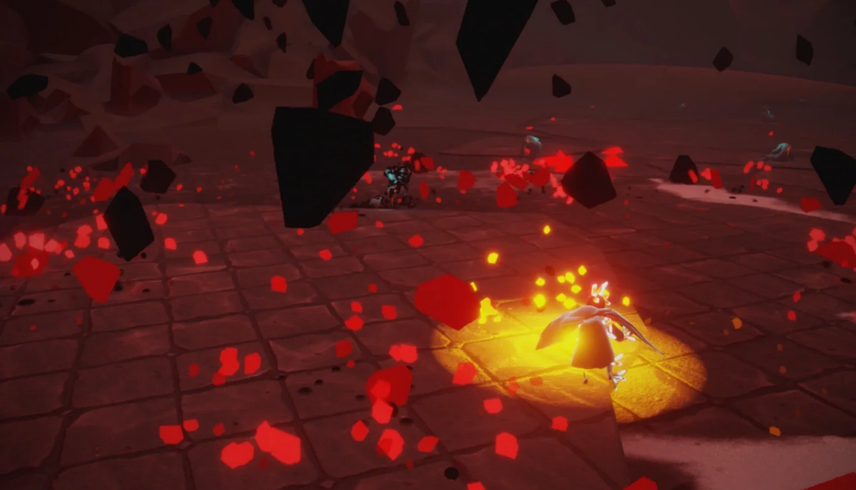 穿过管道区后进入伊甸之眼,这里需要献祭光之翼。靠近发光的先祖石像,点击交互按钮送出光之翼,每献祭4个先祖可获得1根升华蜡烛。注意躲避红石雨,利用石灯补充能量。献祭过程中光之翼会逐渐减少,归零时触发重生剧情,跟随飞鸟进入银河即可完成。每周可重复献祭,但已救赎的先祖不会重复计算奖励。