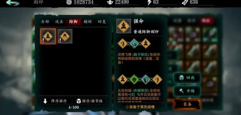 五圣祝福的终极目标是替代套装部位,比如穿三件龙套+五圣衣服就能触发四件套效果。但触发条件比较苛刻,必须全部刻印强化到+5(即20级),所以要有耐心。刷图时多关注紫色箭头房间,偶尔会隐藏额外奖励;平时囤积的铜钱也别乱花,洗孔位和强化都很耗资源。