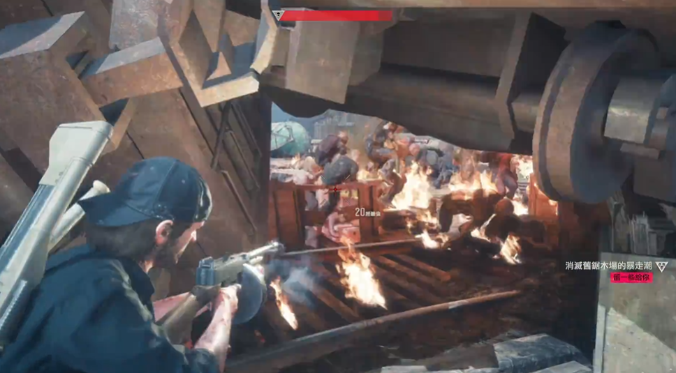 地形利用与战术执行直接影响战斗效率。锯木厂四通八达的结构容易遭遇包抄,建议预先在路径布置遥控炸药。木堆处可按键放下障碍物阻挡尸群,趁机投掷爆炸物。建筑物高处虽能提供临时掩护,但内部复杂空间易被困,建议优先选择室外周旋。大坝与桥梁可作为分割尸群的战略地点,狭窄地形能延缓其行进速度。