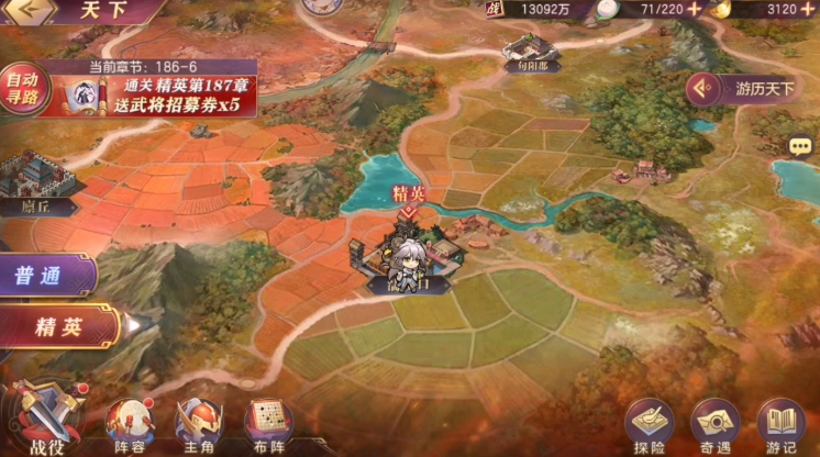 刚进入游戏时,第一天最重要的就是全力推主线副本和黄天秘境,尽快解锁演武堂功能。演武堂排名越高奖励的元宝就越多,这些元宝可是前期发展的关键资源。记得推图过程中缺的武将可以用演武商店里的碎片兑换,这样能有效补充阵容短板。