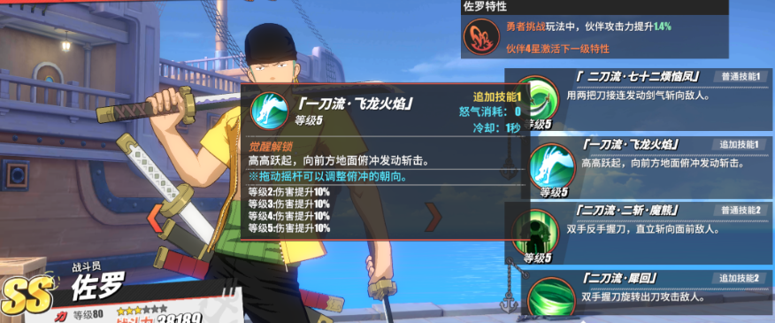 索隆作为初始角色之一,强度却丝毫不逊色。两段位移技能配合霸体效果,能在竞技场中打出流畅连招。他的技能爆发高,但需要精准命中才能发挥最大威力,操作上略有门槛。如果追求高爆发和操作感,索隆是不错的选择。