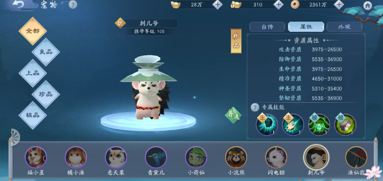 橙宠方面建议直接跳过资质较差的类型,等105级后攒够6000银宝直接入手高资质橙宠。这里特别推荐9000银宝的鹤,虽然价格稍贵但基础属性提升明显,需要125级才能使用。不过平民玩家其实安心培养教主猫就行,后期通过传功系统可以无损转移培养资源,慢慢积累总能拥有心仪的橙宠。记住宠物之间传功功能能有效减少过渡期的资源浪费,这个机制一定要合理利用。
