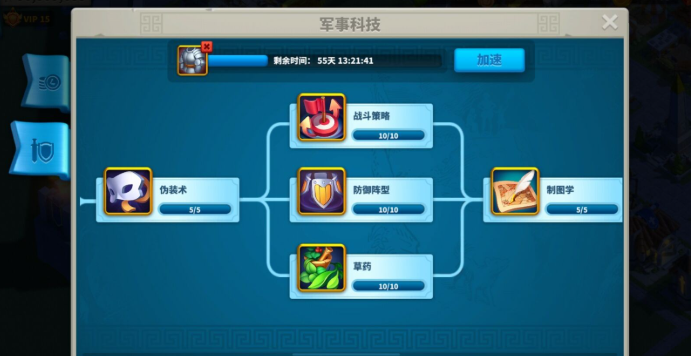 科技研发方面需完成军事科技树中的军团系列研究,该系列科技能直接增加部队出征数量。研究前需确保学院等级达到对应要求,并提前储备足够的加速道具和资源。经济科技中的高级行军也能间接提升部队调度能力,建议与军事科技同步推进。研发过程中要合理分配加速道具,优先用于关键科技节点。