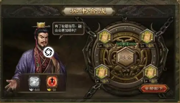 通关210级副本并研究完阵法科技后,会自动开启藏书阁。在这里可以用4本同等级兵书合成更高一级兵书,最高可合成到8级。合成有一定失败几率,失败时兵书数量会减少但等级不变。这种机制既提供了管理低级兵书的途径,也加快了阵法等级的提升速度。