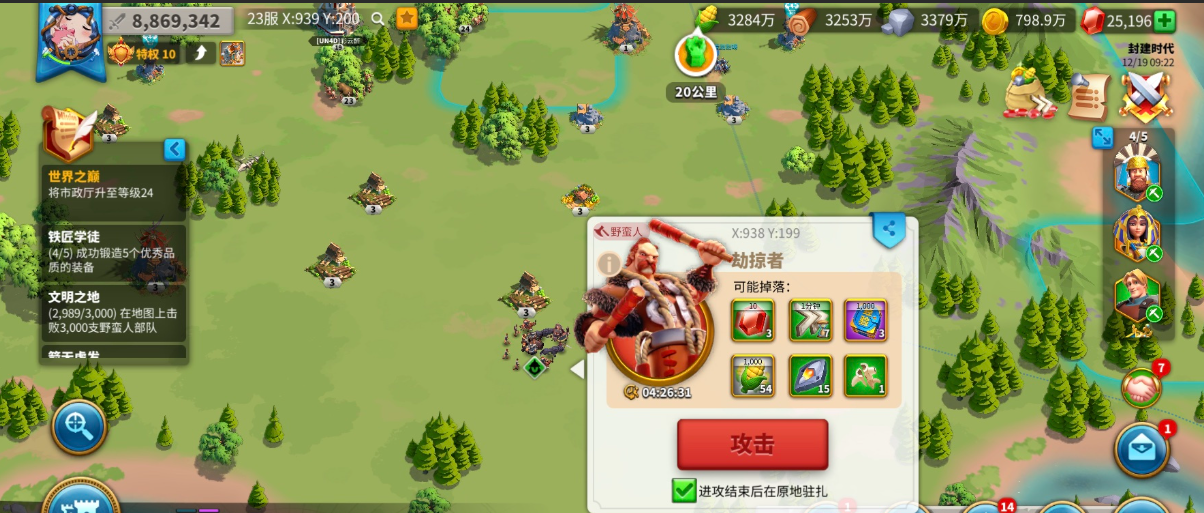 拿到王国补给箱,首先得找到地图上的劫掠者并击败它们。这些家伙会掉落尘封的毛皮口袋,打开口袋就能得到拼图碎片。有了碎片后,在远征前夕活动页面兑换成王国补给箱,最后在背包里使用就能开出一堆好东西,比如资源和加速器。记得多攒点体力,因为打劫掠者消耗不小,但回报绝对值得。