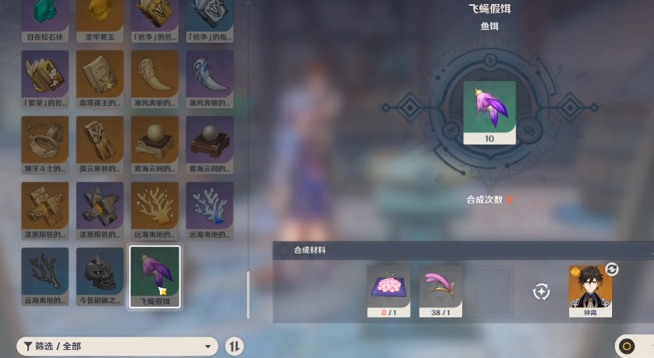你需要找到一个合成台,城镇里像蒙德城、璃月港这些地方都能轻松找到。与合成台交互后,在制作界面里找到钓鱼用具的分类,里面应该就有飞蝇假饵的选项了。每制作一次会消耗1个绯樱绣球和1个马尾,然后一次性给你10个飞蝇假饵,这个制作比例还是很划算的。制作过程就是点一下按钮的事,瞬间完成,之后你就能在背包的鱼饵栏里看到这些新做好的假饵,随时可以拿去用了。