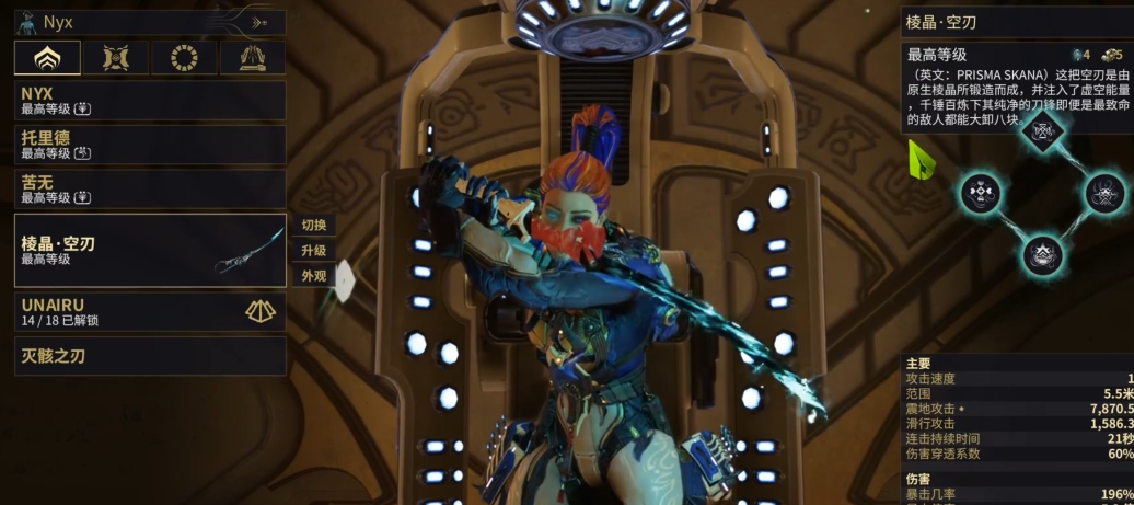 这时候选武器,它的基础面板和Mod搭配空间变得特别重要,你得看看那些关键的属性,比如暴击率、触发几率这些,有没有哪个特别突出,因为这意味着它适合往哪个方向培养,是走暴击流一刀秒怪的路子,还是堆触发靠异常状态慢慢磨死高阶敌人,同时也要留意武器自带的极性槽,这能帮你省下宝贵的Forma和核心,让你在Mod容量还不多的时候就能装上一些关键卡,武器的获取方式也得掂量一下,是商城直接买蓝图,还是得去氏族道场复制,或者需要打特定BOSS,优先选那些材料要求你目前星球能产出、制作流程不卡脖子的。