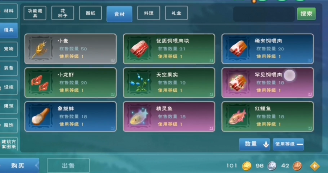 稀有肉是一种紫色的饲喂肉,它的最大特点是堆叠数量高,一格能放200个,而且重量很轻,每个只有0.01千克,这对于经常需要大量收集材料的玩家来说非常友好。它不能直接做成给人吃的料理,但却是很多高级宠物饲料里必不可少的关键材料。你想驯服某些厉害的宠物,就得提前准备好足量的稀有肉。
