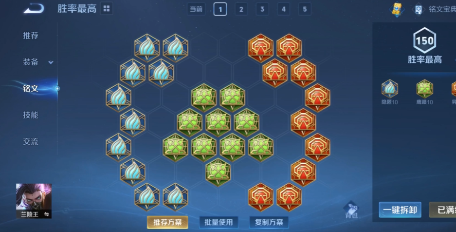 兰陵王的核心思路是强化物理穿透和移动速度,红色铭文通常推荐异变,它提供物理攻击和穿透,帮助兰陵王在前期就能对脆皮英雄造成致命伤害,蓝色铭文建议使用狩猎,增加攻击速度和移动速度,提升他的追击和逃生能力,绿色铭文则固定搭配鹰眼,进一步强化物理穿透和攻击力,这套组合让兰陵王在隐身状态下能快速接近目标并打出高额爆发,同时提升清野效率,如果玩家更注重生存,可以在蓝色铭文中混搭隐匿来增加生命回复,但整体以输出为主,避免拖慢他的节奏。
