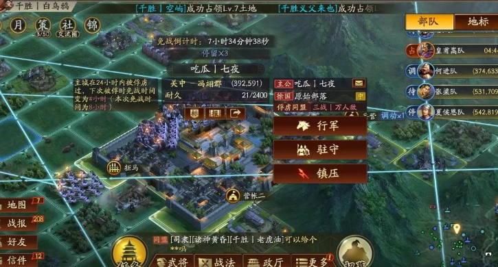驻守的地点不限于你自己的地盘,在主城、同盟要塞、友盟领地甚至俘虏的城池上都可以进行。这就让驻守变成了一个战略支点,同盟管理可以组织成员在关键位置集体驻守,构建一道坚实的防御缓冲带,方便盟友之间快速调动和集结部队。驻守的范围是有限的,通常只能保护自身所那一格以及周围直接相连的六格地块,所以你不能指望一队兵守住一大片,必须合理规划哪些地块值得重点保护,进行有针对性的布防。
