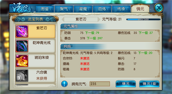对于追求效率的玩家来说,商城购买和副本刷取可以结合使用,确保元气积累不间断。免费途径如神武天极塔和草庙疑云更适合时间充裕的玩家,而付费方式则能满足短期内的需求高峰。合理规划获取方式,可以让玩家在资源分配上更加游刃有余。法宝铸元系统一旦激活,元气属性就会永久生效,无需担心法宝是否在背包中。