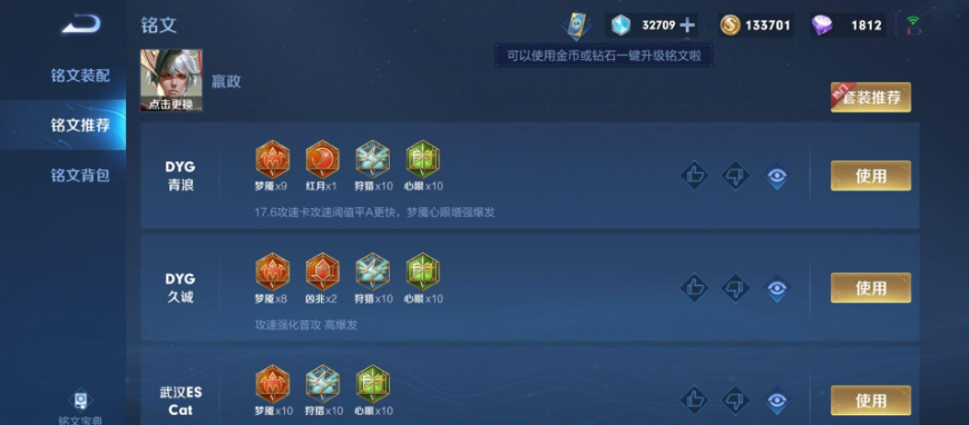 铭文的核心思路同样是围绕攻速、暴击和法术穿透。红色铭文通常选择红月或者无双,红月提供攻速和暴击率,让前期更平滑;无双则专注提升暴击效果,后期伤害更高。绿色铭文基本固定是心眼,它提供法术穿透和攻速,完美契合ad嬴政的伤害类型。蓝色铭文则可以选择狩猎或者贪婪,狩猎提供移速和攻速,支援和走A更灵活;贪婪提供法术吸血,增强前期续航。你可以根据自己是更喜欢机动性还是更看重线上续航来调整蓝色铭文的比例。