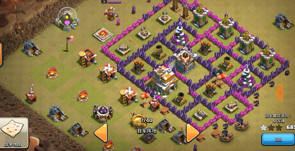 围墙的核心价值在于保护关键目标和制造进攻阻碍,而非简单围合建筑。大本营、黑油罐、资源仓库及部落城堡必须置于多层城墙包裹的核心区,确保防御体系的心脏地带不被快速突破。外围缓冲带可放置训练营等非关键建筑,用于延缓敌军推进速度。同时需严格遵循防御塔射程逻辑:迫击炮和法师塔应覆盖城墙外围,形成交叉火力区;防空火箭分散三角布局以避免被范围法术摧毁。升级中的建筑需及时挪入箭塔射程内充当临时屏障,兼顾资源保护与消耗敌军兵力的双重作用。