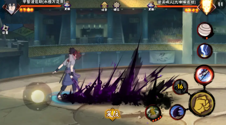 除了连招,各个形态下的具体技能效果也得摸透,雷遁状态下的第一个技能是向前快速突进斩击,还会在落点前方召唤三道落雷,虽然没有强控效果但伤害频率和数值都很可观,第二个技能是让佐助像闪电一样向前突进,对路径上的敌人造成冲击和击飞,而且身后两个身位内的敌人都能打到。 炎遁状态下的技能也很有特色,一技能是连续转身挥出两道暗紫色的飞炎,转身的时候身上会闪红光,这时候可是无敌的能用来躲技能,二技能可以在释放时进行小范围的转向调整,打中敌人后还能造成持续的燃烧伤害。 释放完技能后切换形态,还能触发一个切换技能,这个技能是永恒万花筒佐助非常重要的输出手段,放完之后会强化你切换到的那个形态下的另一个技能。