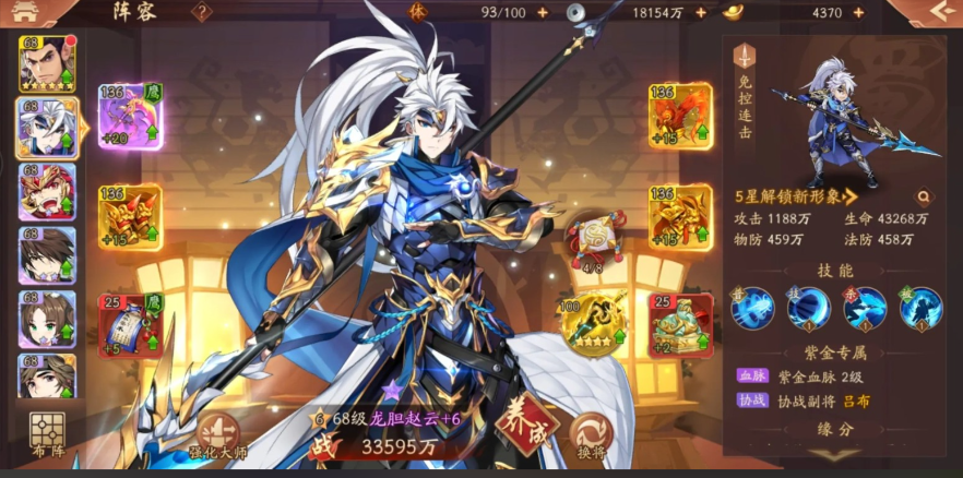 武将到手后,深入的培养才是提升战力的硬道理。培养主要围绕着升级、突破、装备和技能这几个方面。升级是最基础的,用经验丹把主力武将的等级拉上来。突破则能带来质的飞跃,每突破一层都能显著提升属性和解锁新的天赋,比如赵云突破到一定阶段,能获得开局更快释放怒气的天赋,这对抢占先机至关重要。装备方面要讲究搭配,给关羽、赵云这样的输出核心优先选择增加攻击、暴击的武器和饰品,像霸王套装就很合适;给张飞、刘备则要堆生命值和防御属性,提升生存能力。宝物和神兵的选择也同理,要强化武将的核心定位。别忘了技能等级也要跟着点上去,这直接关系到伤害和治疗量。