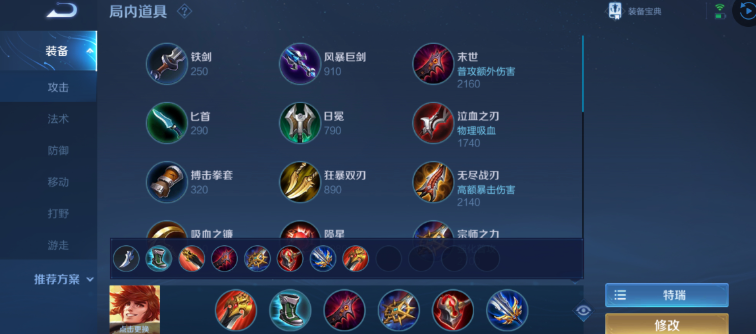 新手优先考虑容错率高的半肉流派,出装顺序常为追击刀锋、抵抗之靴、末世、冰痕之握、暴烈之甲和魔女斗篷,这套装备能提供可观的物理防御、法术抗性及额外伤害加成,尤其在敌方控制技能较多或自身对连招不熟练时,能有效提升战场存活率。