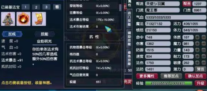 魔力是直接影响法术能力的核心属性,其主要作用是提升角色的灵力。每增加1点魔力属性,可以提升角色的魔法值上限,并增加0.7点灵力,而灵力直接等同于法术伤害和法术防御。这意味着魔力加点是强化法术输出能力和法术抗性的根本途径,对于法系门派而言,这是必须优先保障的属性。