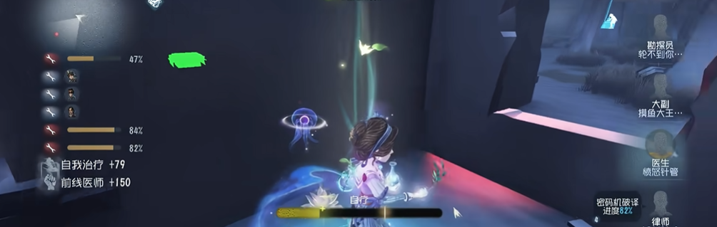 医生需精准把握治疗与牵制的时机。受到攻击后,应充分利用庄园老友特质提供的额外加速时间迅速转点,进入复杂地形或板区后再进行自疗。在板区与监管者博弈时,可寻找机会砸板争取治疗时间。救人时需要谨慎,若非必要应避免单人救援,或采用骗刀等技巧。救下队友后,应优先考虑自身安全,利用避难所的加速效果尽快为队友完成治疗或确保自身状态健康。开局阶段应以破译密码机为主,同时保持对周围环境的警觉,心跳提示明显时应果断停止破译准备牵制或转移。切忌在监管者逼近时贪恋破译进度。