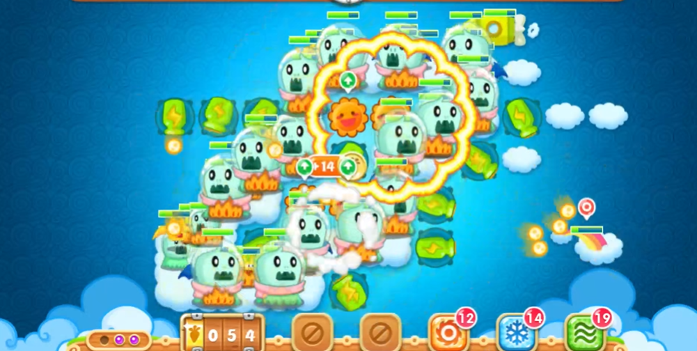要在第59关获得金萝卜,需要统筹规划炮塔布局、快速清理所有道具并完成额外的怪物消灭任务,其核心在于利用减速风扇与瓶子炮的协同,并尽早解锁场景中的隐藏炮塔。开局阶段是积累资源的关键,建议在场景中间的核心位置立即放置一个风扇炮塔并将其升至顶级,锁定攻击初始的云朵或气球道具,持续攻击约20秒以赚取第一波金币,这能为后续建设打下基础,攻击云朵可以打出隐藏的太阳花炮塔,而攻击左侧气球则能炸出四个炸弹星,这些隐藏炮塔提供了重要的早期火力支援,太阳花具备范围伤害,应尽快升级以帮助清理周围密集的道具。