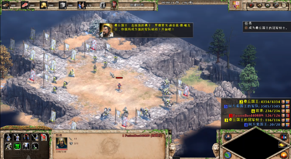 开局阶段不应急于发起正面冲突,优先发展稳固的经济基础是后续行动成功的保障。玩家初始控制熙德和一小队人马在地图中央建立基地,此时应立刻指挥村民快速采集木材和食物,建立完整的资源采集链条。在经济发展起来之前,贸然出击会分散宝贵的资源和注意力。在基地周围适时修建箭塔和围墙可以有效防御敌人初期的骚扰,保护村民和资源点。探索地图时除了寻找圣物,也应留意地图上可能存在的废弃房屋或中立单位,有时能从中获得额外的资源或免费军队补充战力。